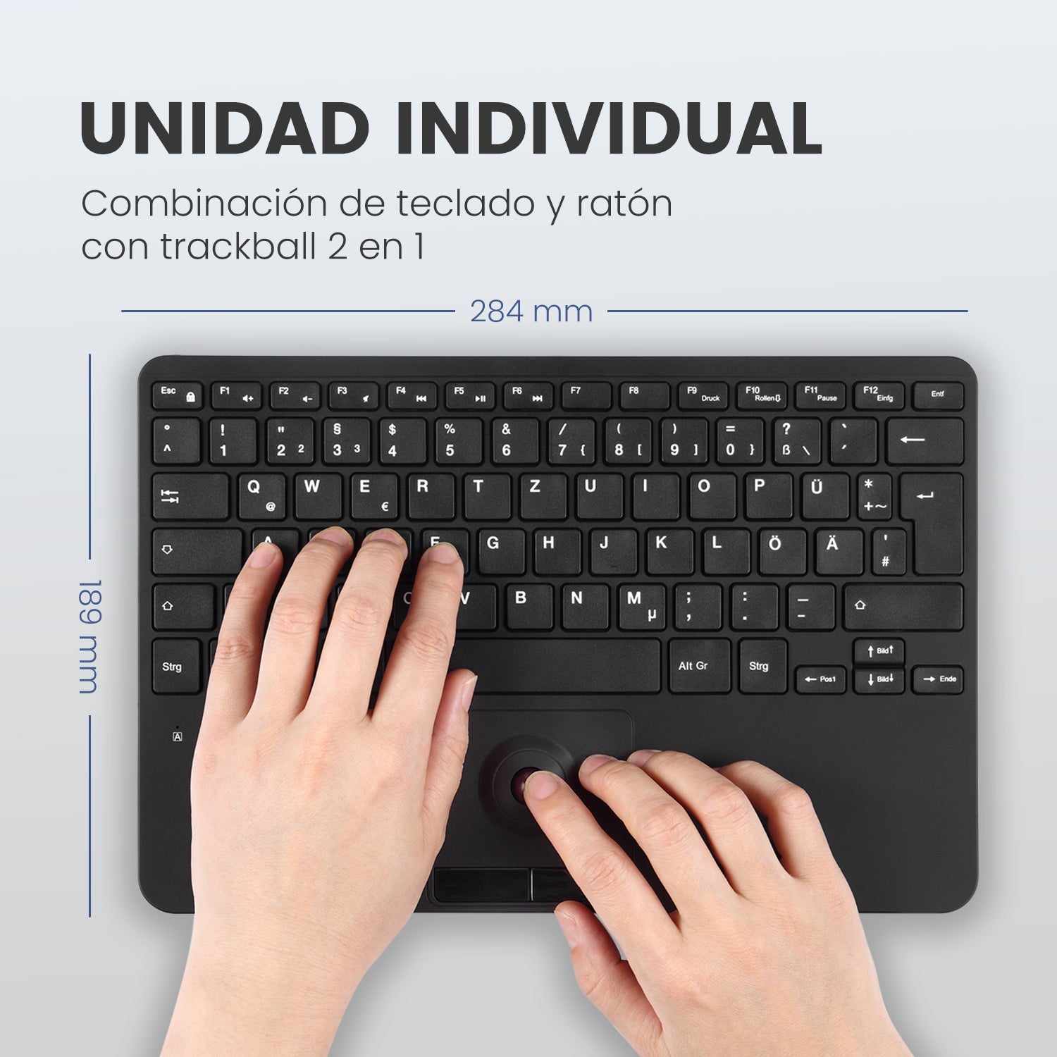 Kabelgebundene Mini-Tastatur mit Trackball, geeignet für verschiedene industrielle und professionelle Anwendungen.